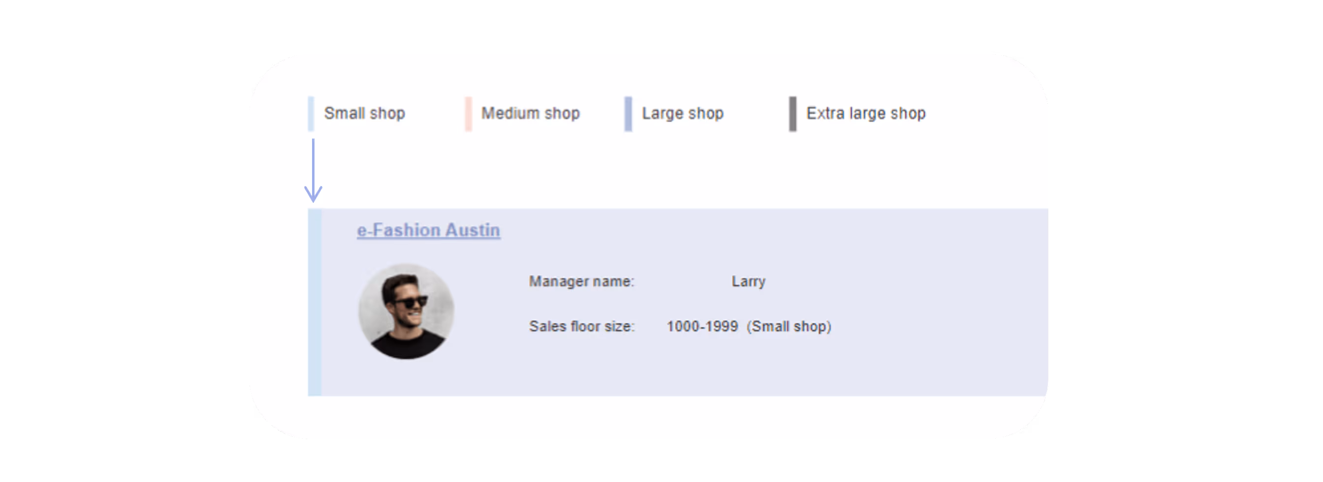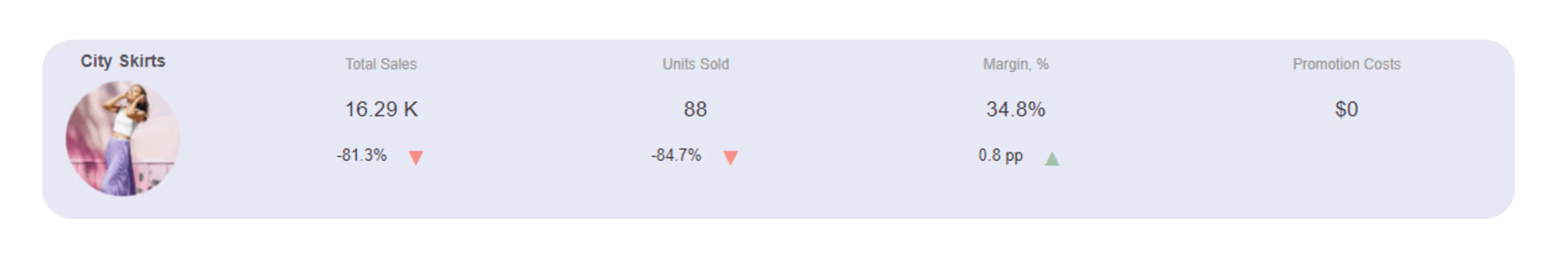 For example, if large stores are the focus of interest, it may be beneficial to perform a deeper analysis of this group to uncover the factors influencing their performance. By selecting the relevant data point in the chart, the report dynamically adjusts to display the necessary information, enabling a more focused and insightful analysis.