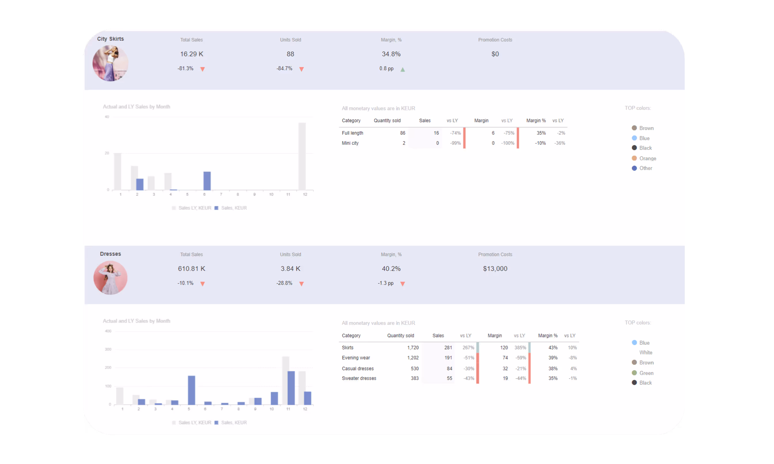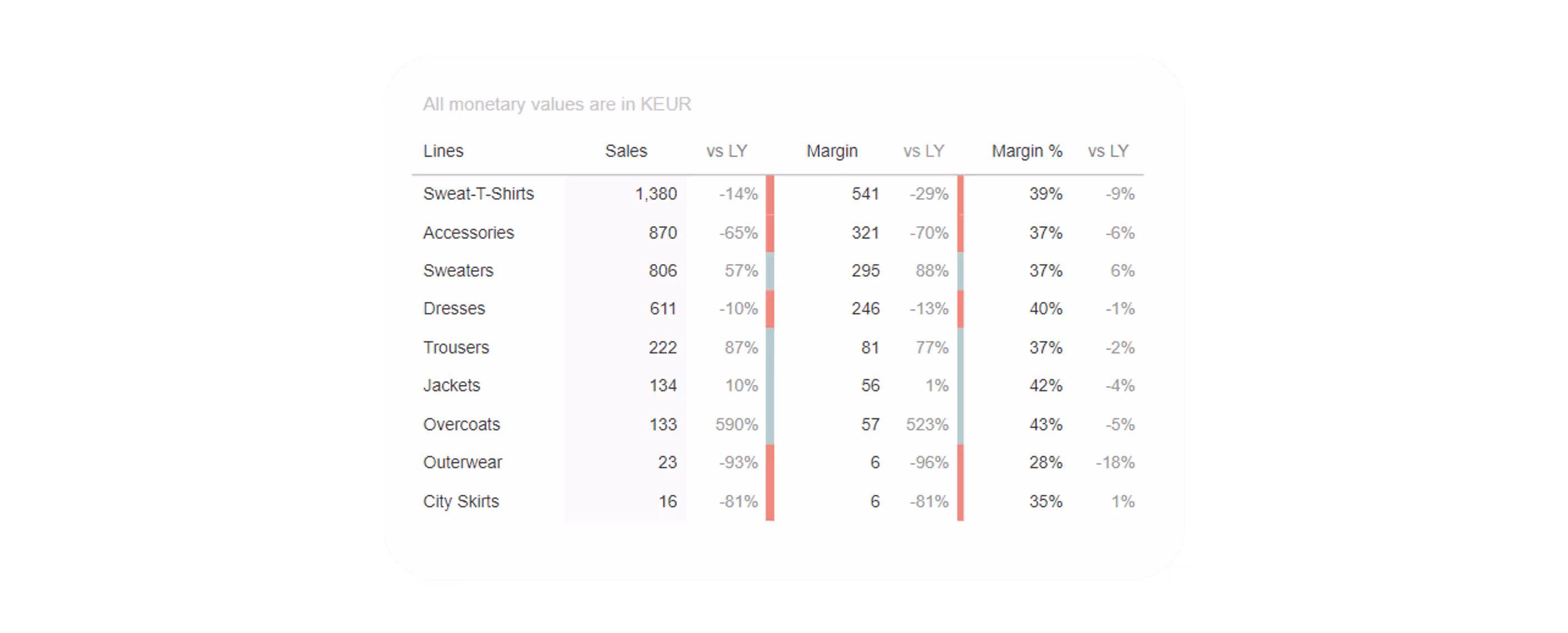 - Page by product lines: Dives deeper into individual product lines, providing insights and analysis.