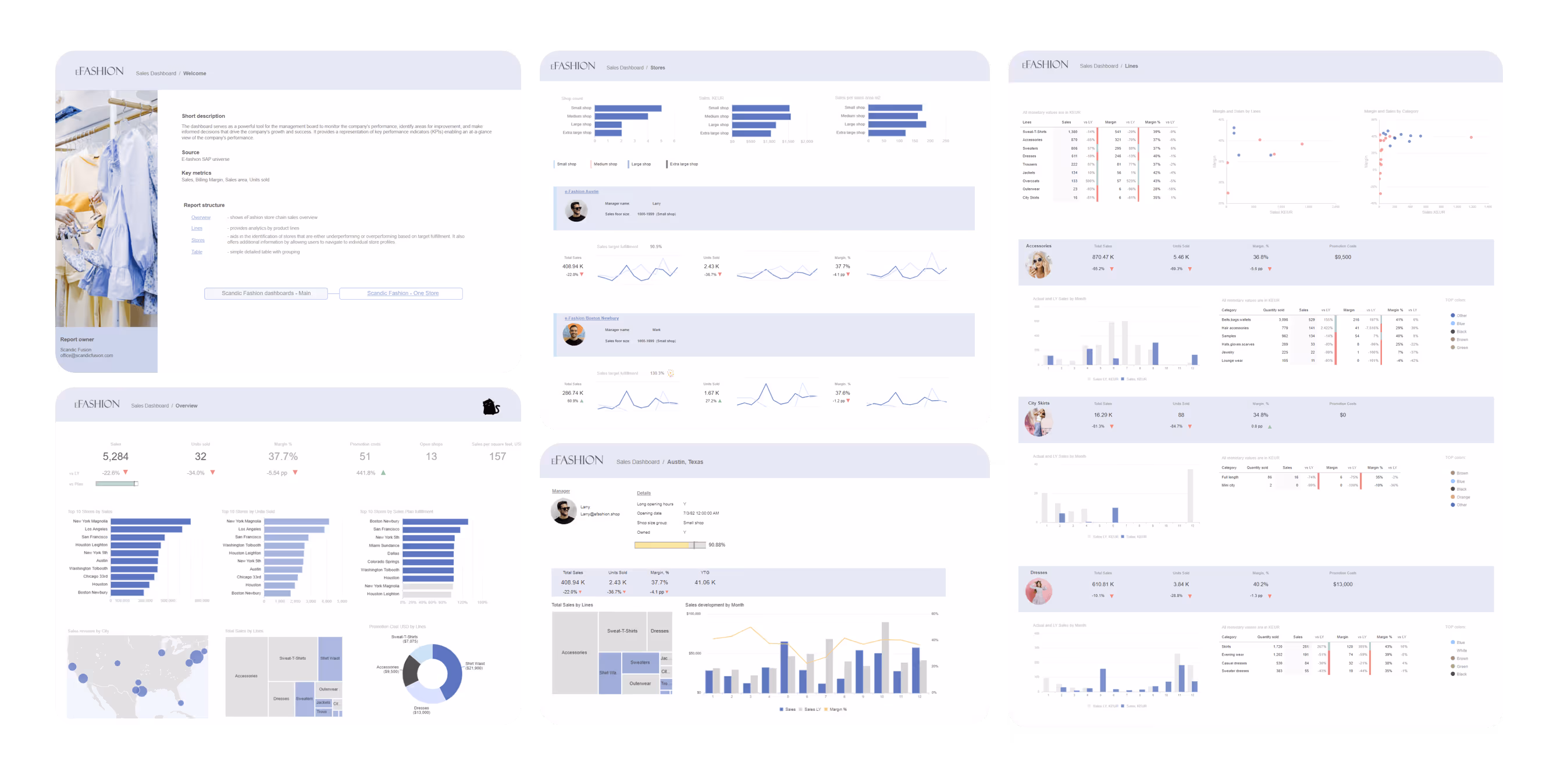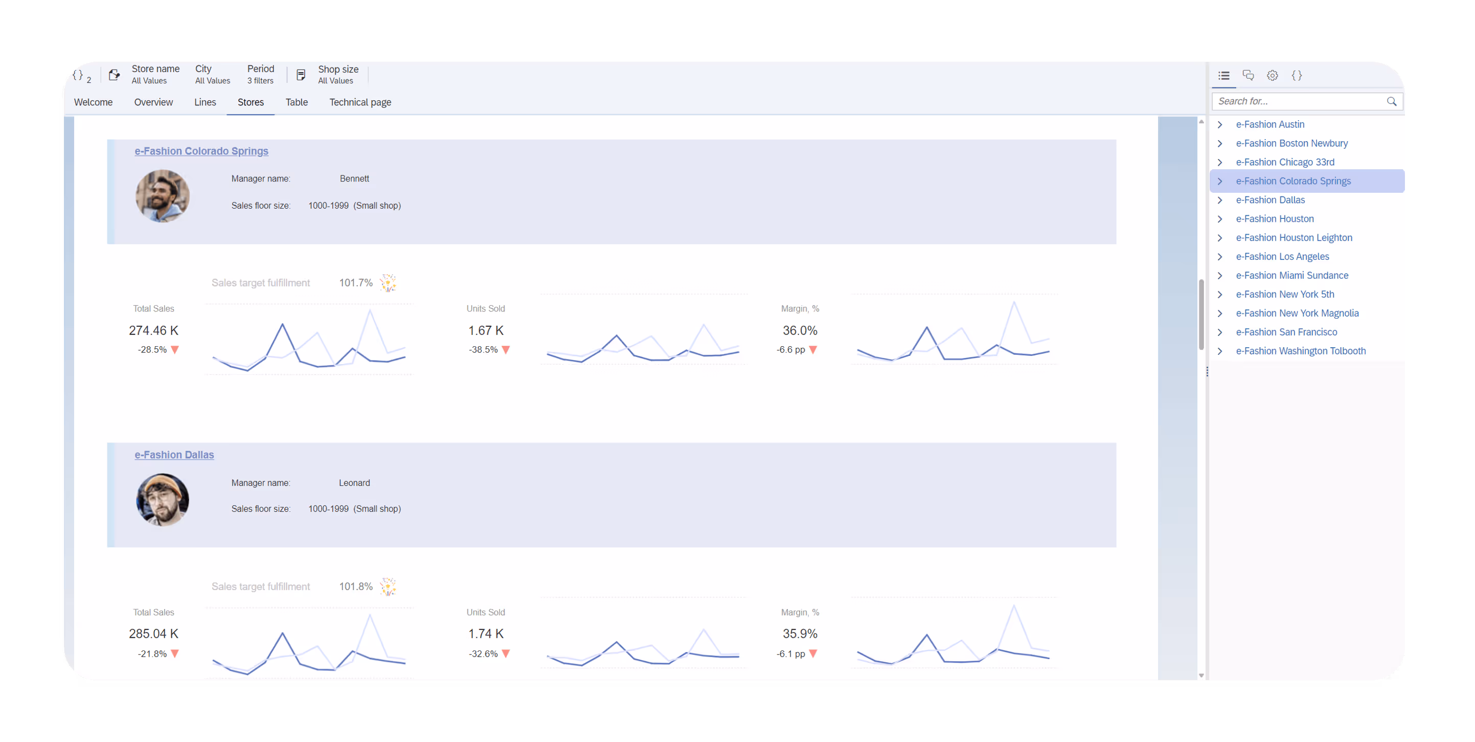 - Page by stores: Focuses on individual stores, allowing detailed examination by hyperlink to details.