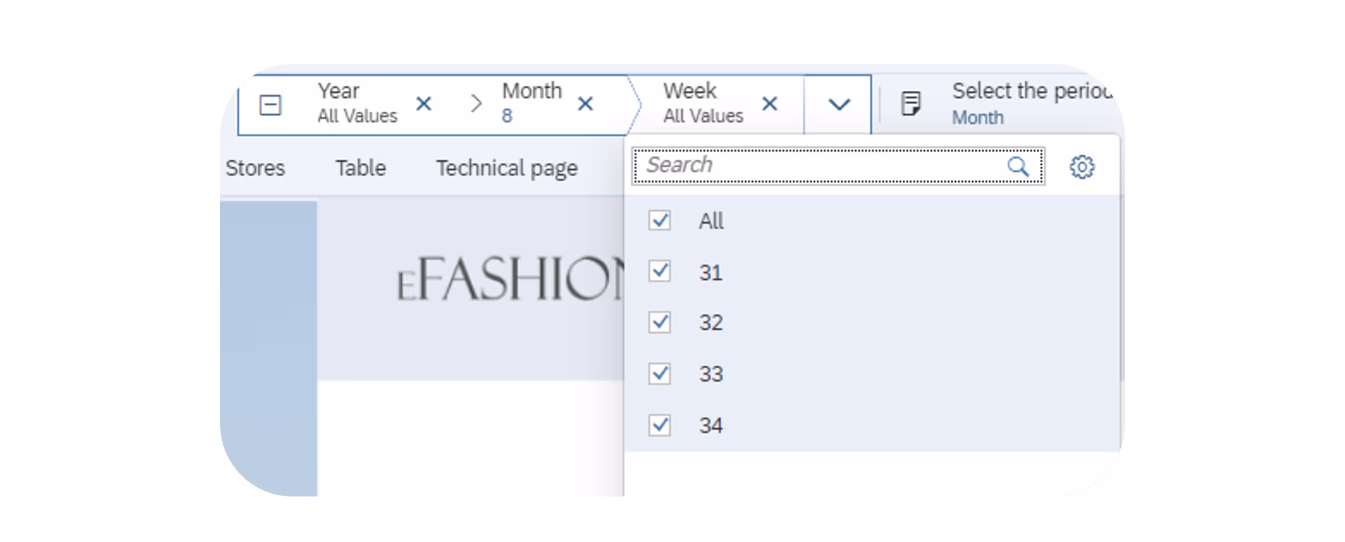As navigation from chart values is currently unavailable, we implemented an additional step: clicking on a store displays a detailed table or text. From there, users can navigate to another page or Webi document.