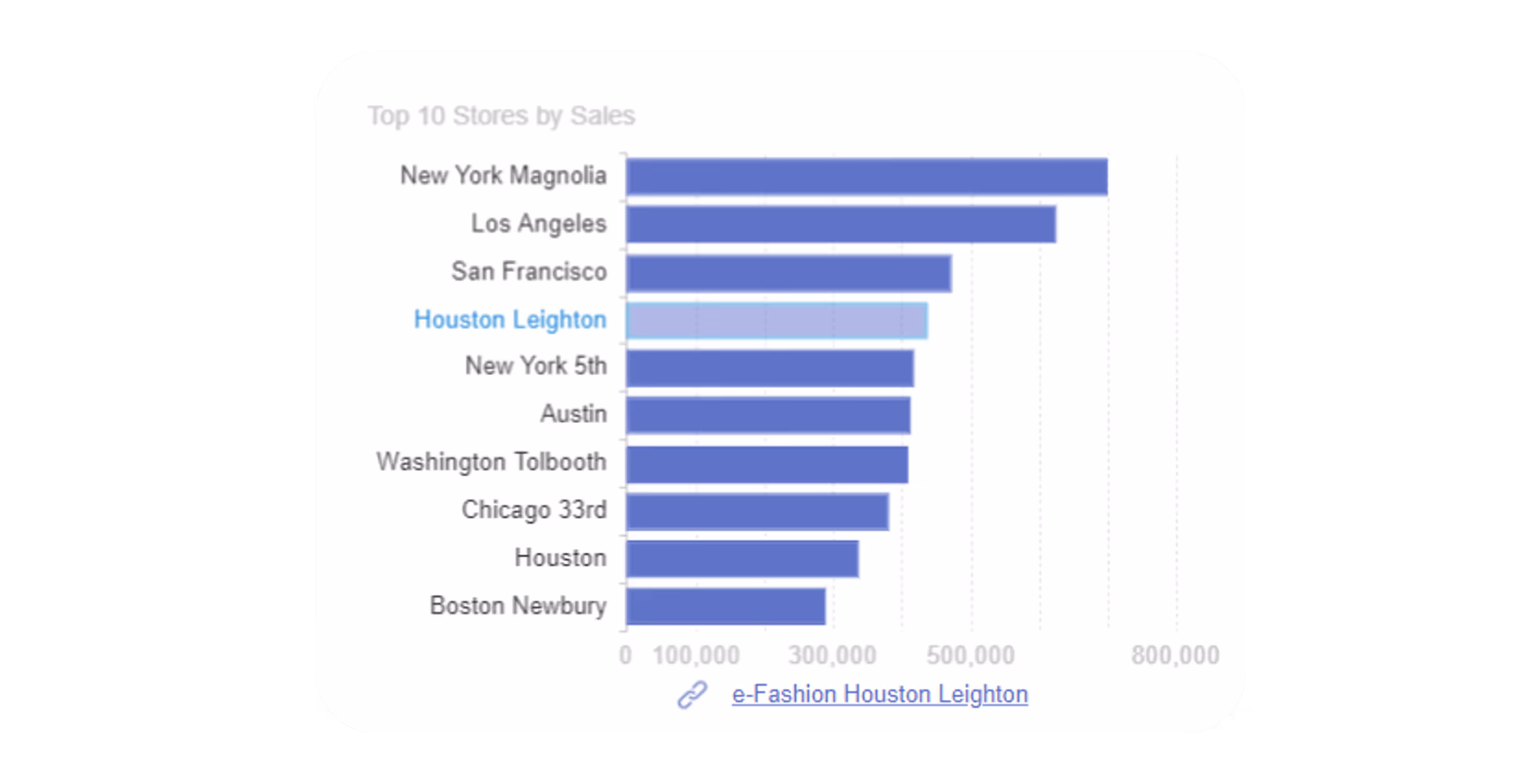 Element links are interactive navigation tools that allow users to connect data elements within a report. By clicking on an element link, users can filter, drill down, or navigate to related data, enhancing data exploration. While this is a standard functionality that has been available for a long time, it is still worth highlighting as it significantly improves the interactivity and usability of reports.