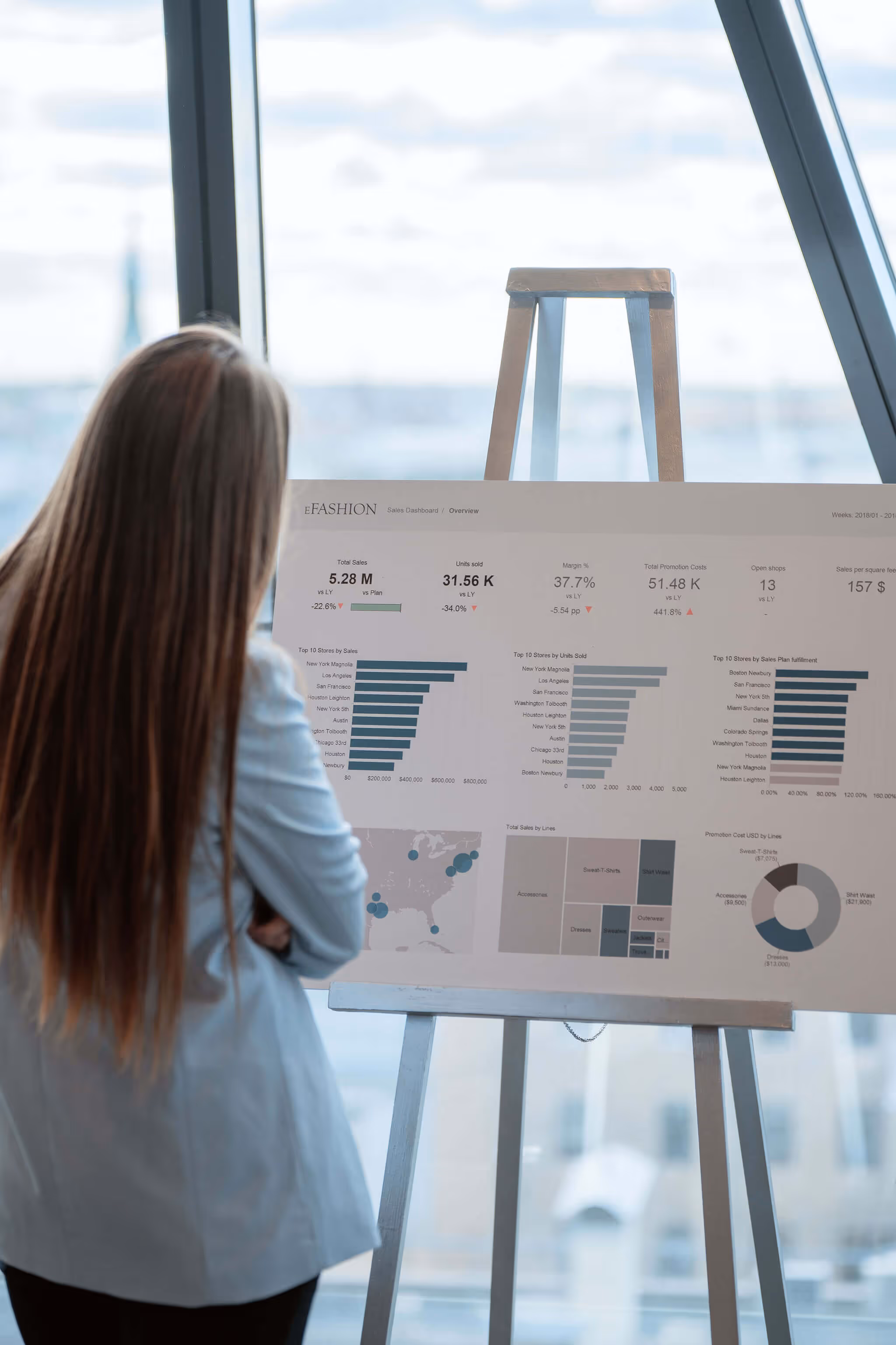 From a business perspective, the dashboard serves as a powerful tool for the management board to monitor company performance, identify areas for improvement, and make informed decisions that drive the company's growth and success. It visually presents key performance indicators (KPIs), providing a quick overview of the company's performance.