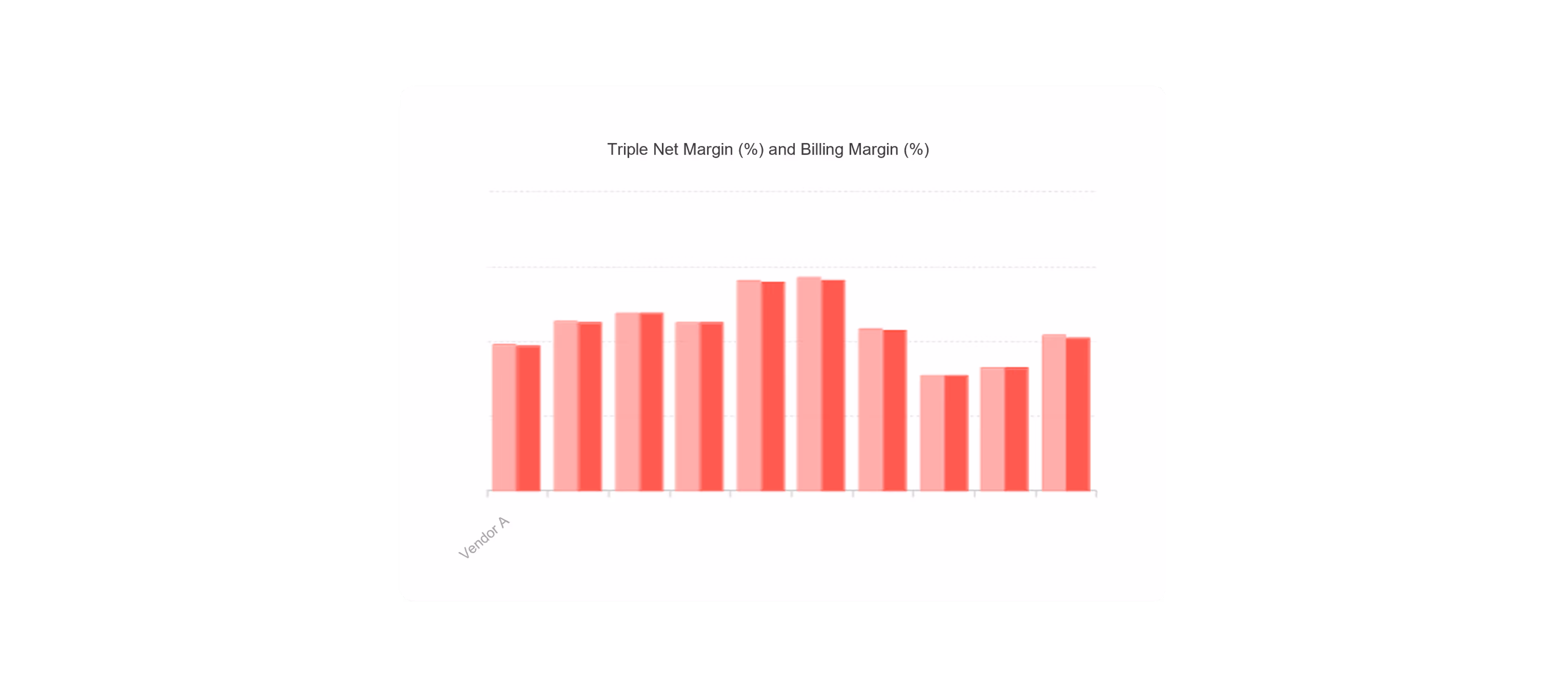 Dashboards intended for a broad audience often have unique requirements. For instance, a vendor might need to understand their ranking compared to other vendors without revealing the identities of those vendors. Meeting this need called for a tailored solution. We designed charts that conceal the names of other vendors, displaying only the numbers.