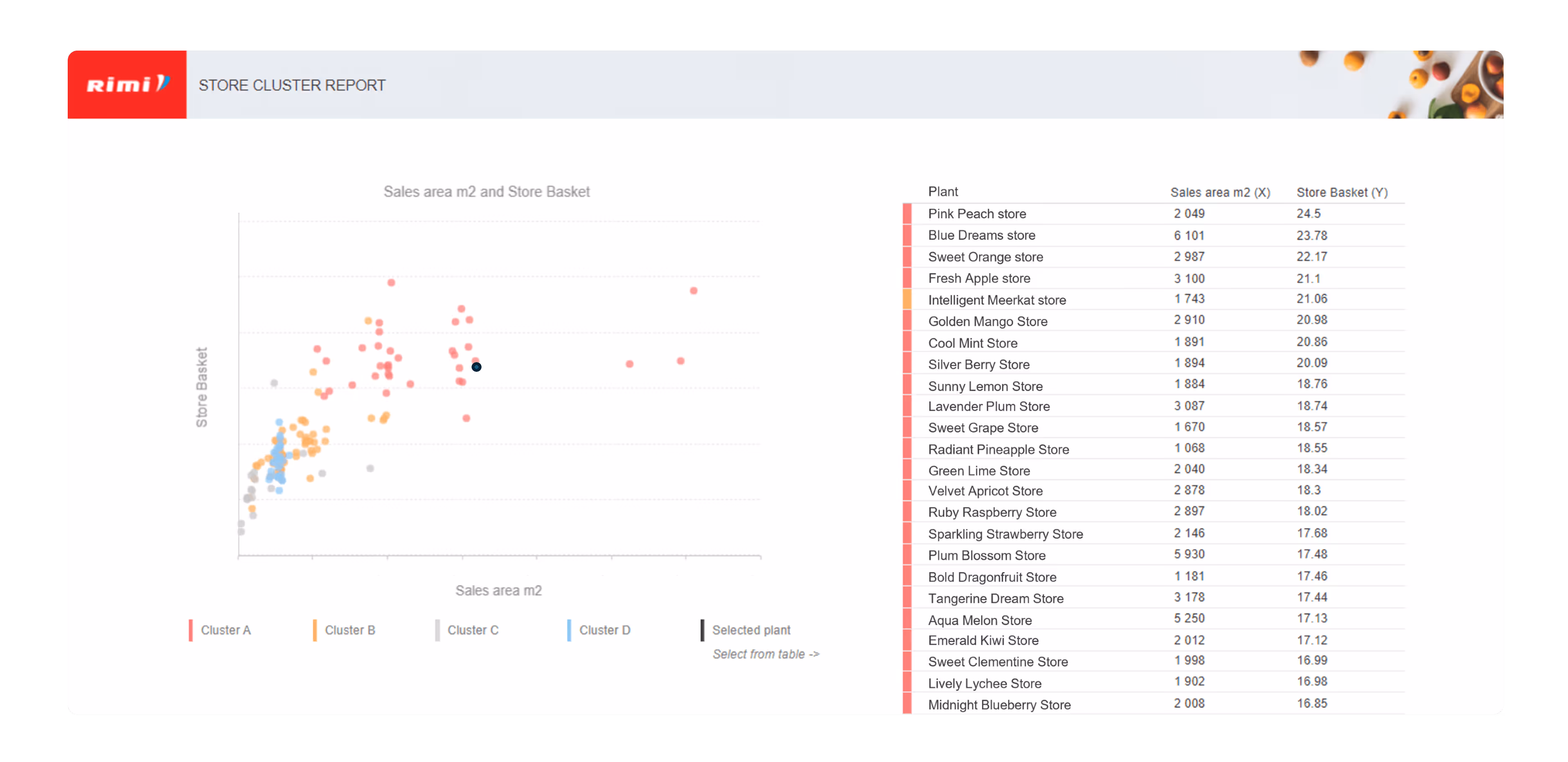 - How the Assortment & Buying department compares stores using dynamic charts and clusters;