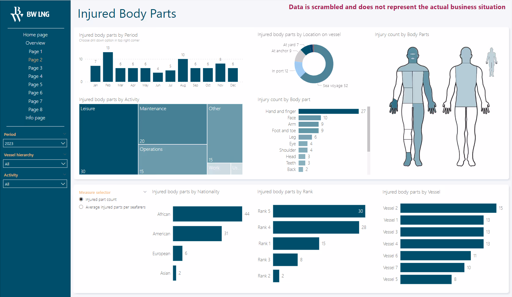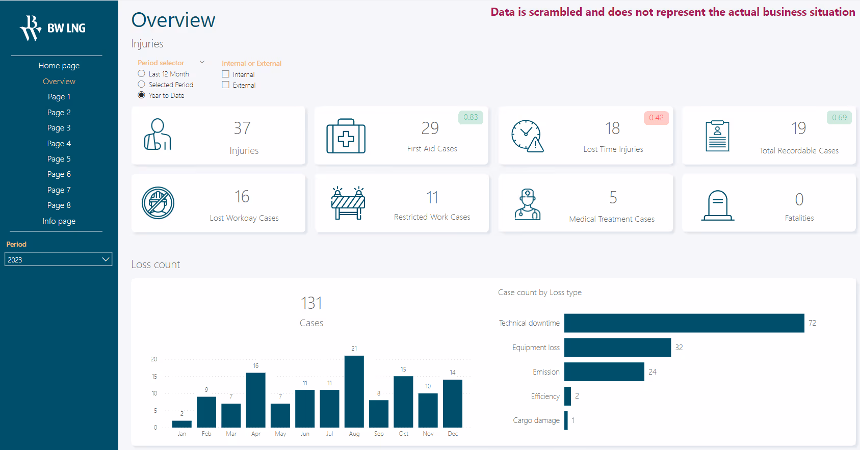 The collaboration between Scandic Fusion and BW LNG significantly improved HSEQ analytics reports. By implementing reporting guidelines and streamlining the data model and the whole HSEQ analytics, BW LNG now benefits from interactive and structured dashboards that enable data exploration and informed decision-making.